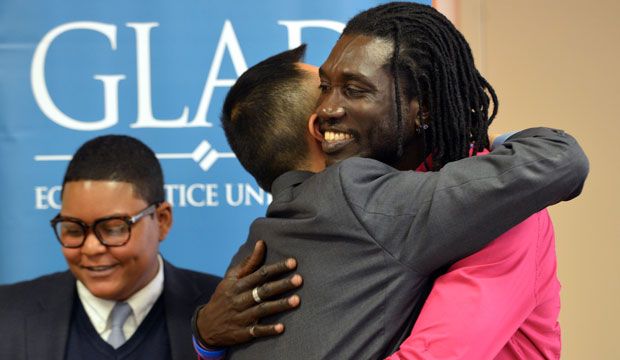 Unlike some other statutes, the INA does not define a spouse as either a husband or a wife, so the repeal of DOMA allowed for the recognition of same-sex married couples for immigration purposes without further amendments. Unfortunately, the INA’s focus on legally recognized family ties and definitions regarding parent-child relationships exclude LGBT families whose relationships were not recognized in their home countries. For Mukasa, this has had a tragic impact on his family, whom he has not seen in more than two years. Although asylum seekers can add their immediate relatives to their asylum applications and petition to bring their spouses and children to join them when they are granted asylum, his family is not recognized under Ugandan law. As a result, the United States does not legally recognize his family either. Describing his situation, Mukasa said, “Homophobia separated me from my family, but so has the immigration system that has made it difficult for me to reunite with my family, just because of a document. Even though I can prove in other ways I have loved them as a dad.”