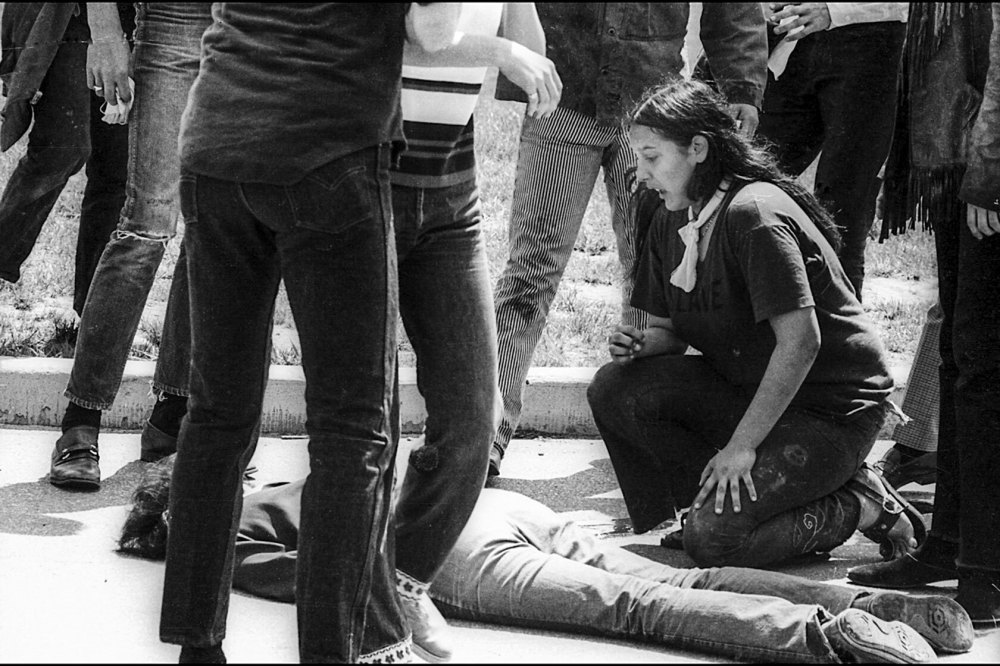 Mary Ann Vecchio kneels over the body of Kent State University student Jeffrey Miller, who had been shot during an antiwar demonstration on the university campus in Kent, Ohio, on May 4, 1970. (Getty/Howard Ruffner)