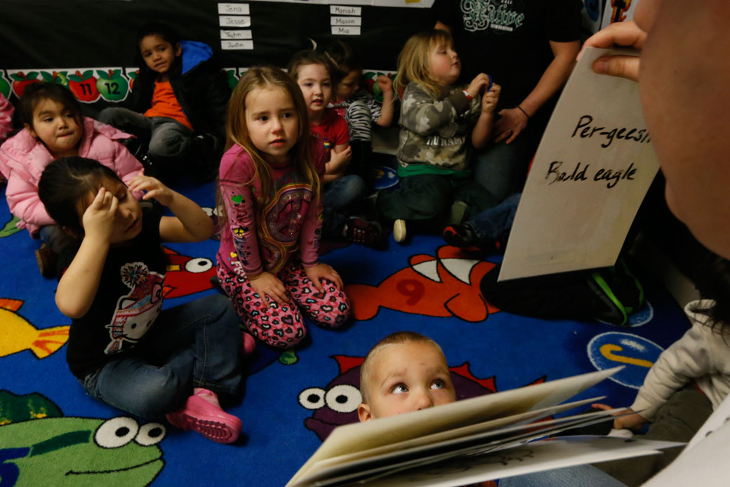 A Los Angeles preschool teacher conducts a class as preschoolers look on, March 2013. (Getty/Lawrence K. Ho/Los Angeles Times)